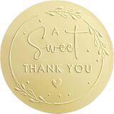 • Sweet Thank You Sticker Design: These personalized stickers feature an elegant gold foil embossed design that says "A Sweet Thank You". With their elegant look, these stickers are perfect for weddings, baby showers and any event where you want to express your gratitude.