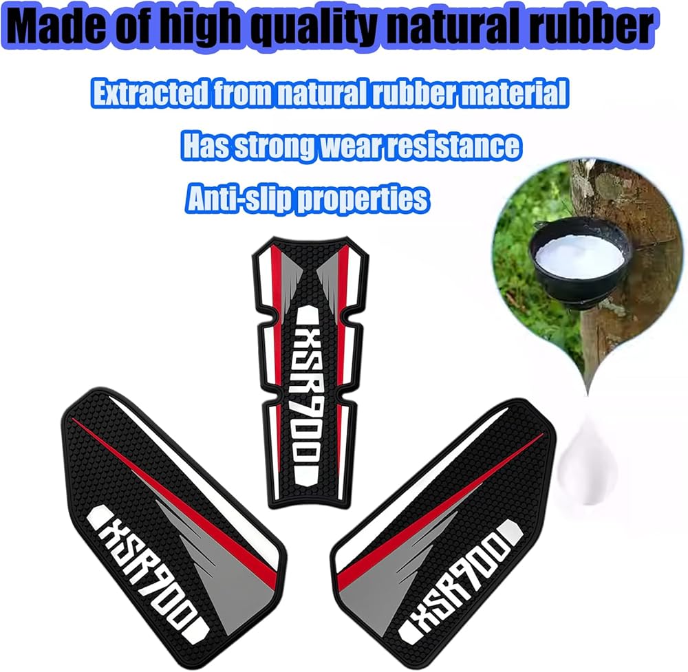 **Made of thickened rubber material,Grain surface texture, strong viscosity, no residual glue, super sticky backing to prevent damage to the clear coating, durable and waterproof, easy to stick and remove, does not damage the fuel tank paint, strong and excellent bonding quality.