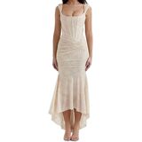Elegant and sexy design: This dress features a U-shaped camisole and a single neckline design, paired with backless elements, showcasing women's elegance and sexy charm, suitable for occasions such as banquets and parties.