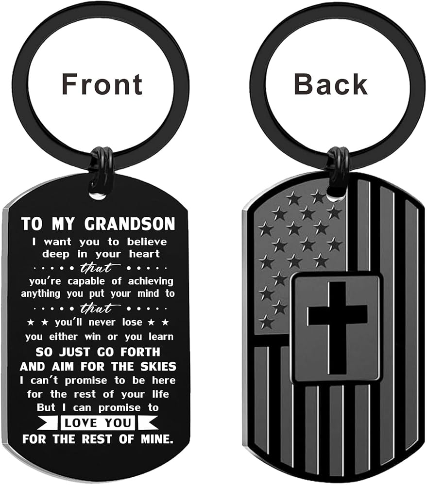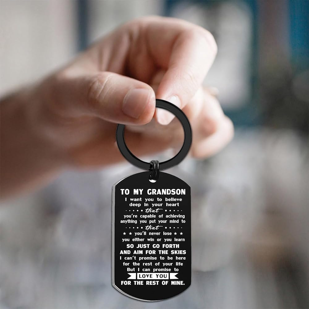 GRANDSON BIRTHDAY GIFTS, This inspirational and positive keychain is the perfect gift for your grandson on: Birthdays, Valentine's Day, Father's Day, Christmas, Graduation, and more. Show your teenage grandson how much you care about him