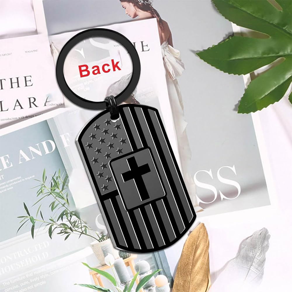 GRANDSON KEYCHAIN, Made of stainless steel, one side engraved with an encouragement note for a boy from his grandpa or grandma, other side is the relief of the American flag. Durable and sturdy, it can last for a long time