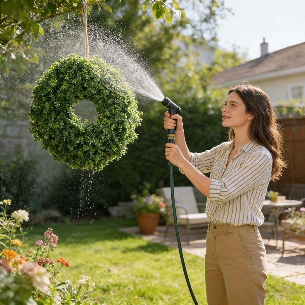 【Durable & Realistic Design】 Crafted from high-quality plastic with a natural matte finish—each leaf mimics the look and feel of real boxwood for year-round freshness.
