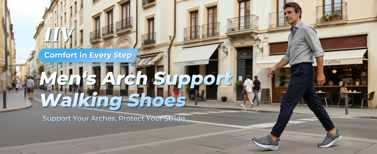 Arch Support Shoes for Men: Equipped with orthotic insoles to offer anatomical arch support to relieve plantar fasciitis, heel discomfort and flat feet pain. These plantar fasciitis shoes align your feet, disperse pressure evenly during extended wear