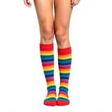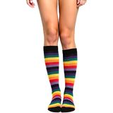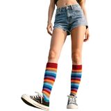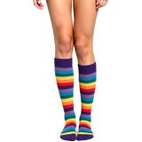 Rainbow Striped Knee High Socks Design: The colorful rainbow stripes coupled with bright colors make the long tube knee high socks more attractive, add not only a sense of fashion, but also various colors to life, allowing you to show your unique personality and charm.The women girls colorful knee high socks can be used as daily wear socks, sports socks, cool dance socks, skateboarding socks, roller skate socks, costume socks, party socks or holiday socks such as St Patricks Day socks/ Christmas socks/ Halloween socks/ Easter socks.
