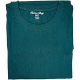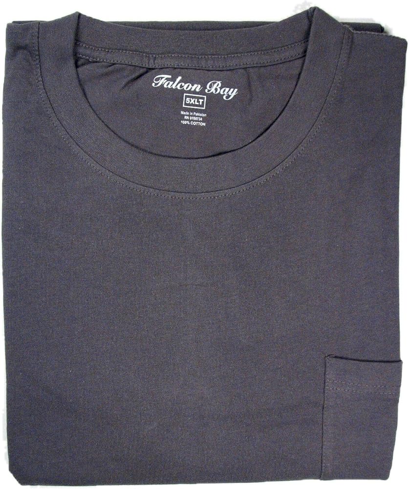 Big & Tall Men's 100% cotton pocket T-shirt - bigger cut and longer length. Brand: Falcon Bay Big & Tall. Fabric: 100% Cotton - medium weight. Refer to Hand Measurements chart in the photo gallery for each size's measurements. One left chest pocket. Clean finished bottom hem. One-inch wide ribbed neckline. Reinforced taping along back neck. All retail tags attached.