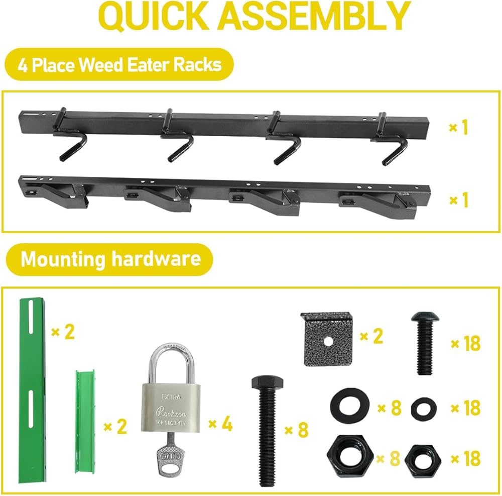 Versatile Design for Open & Enclosed Trailers Securely holds up to 4 weed eaters or trimmers, optimizing space in both open and enclosed trailers with a universal fit for most models