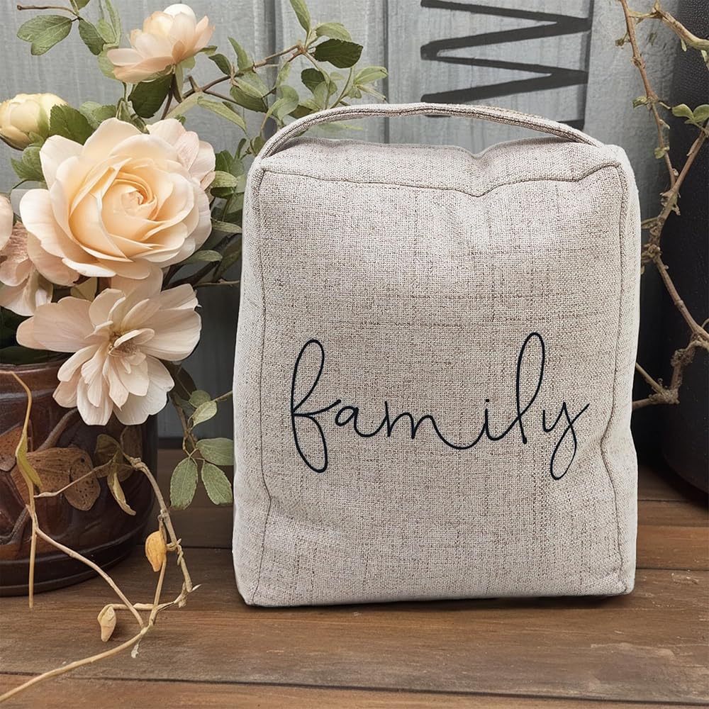 Features: Black script "Family"printed on the front of the door stopper,giving home a warm and confortable atmosphere.