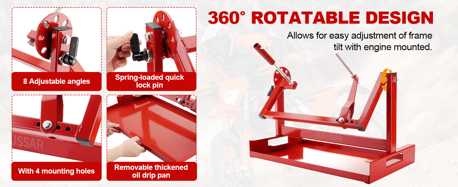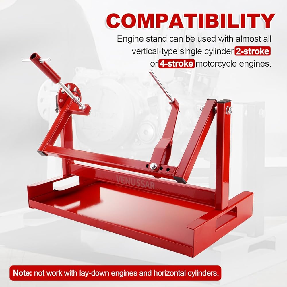 Compatibility: The engine stand can be used with most all vertical-type single cylinder 2-stroke or 4-stroke motorcycle engines(Note: not work with lay-down engines and horizontal cylinders).