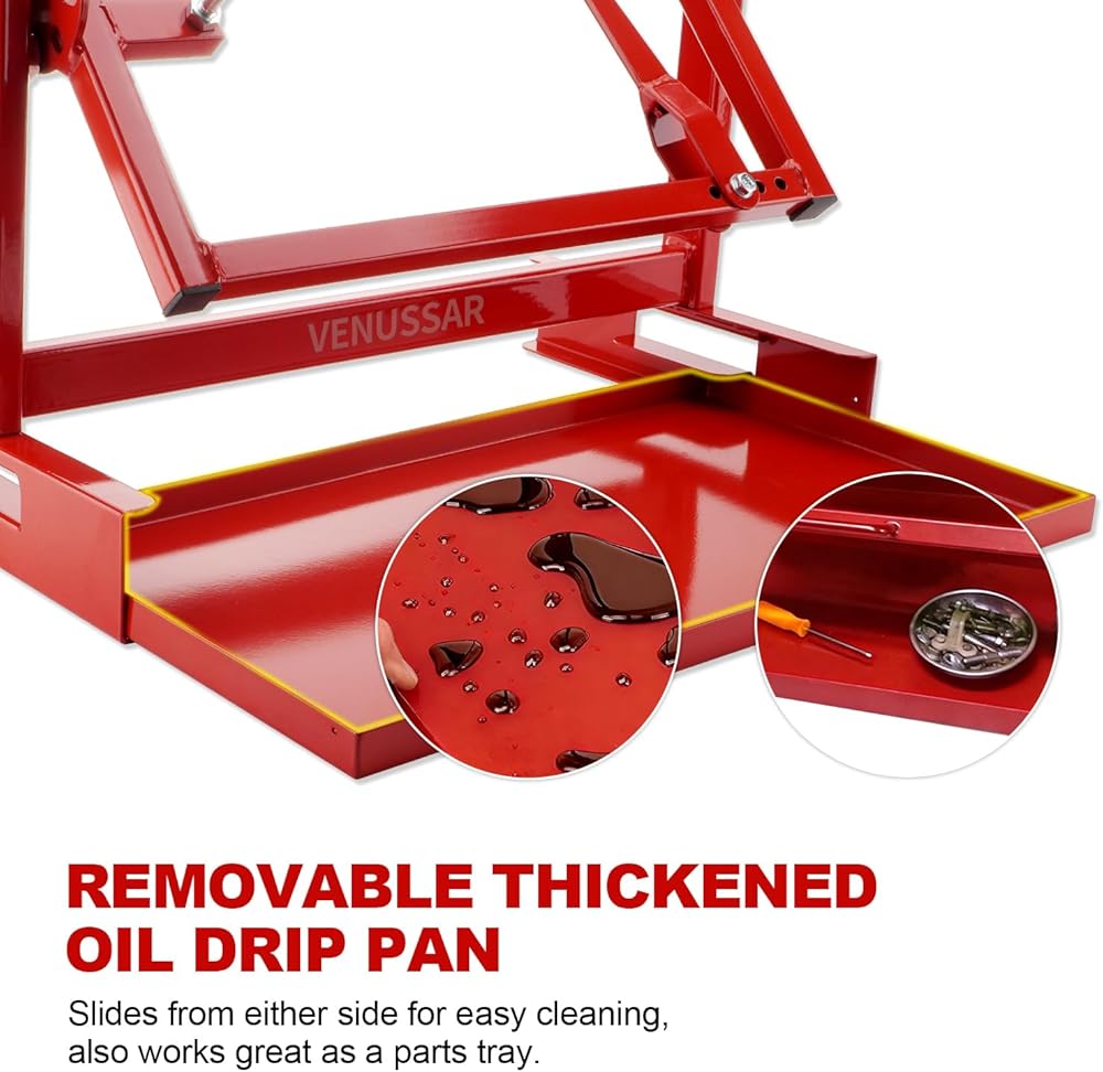 Removable Thickened Oil Drip Pan: Slides from either side for easy cleaning, also works great as a parts tray.