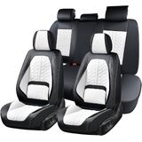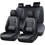 LUXURY DESIGN – Black car seat covers full set made of nappa leather with a 5-layer structure, it's soft and durable. Delicacy perforations on the surface and the 3D lumbar support design make it more comfort during driving. Non-slip bottom keep these covers stay in place when get in or out of the car, even during long time driving. Excellent for everyday use, road trips, commuting, etc