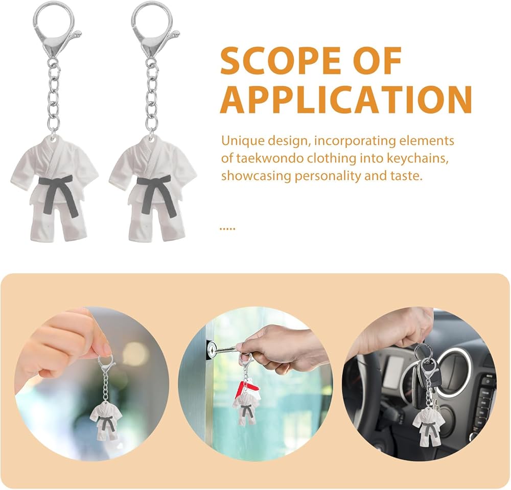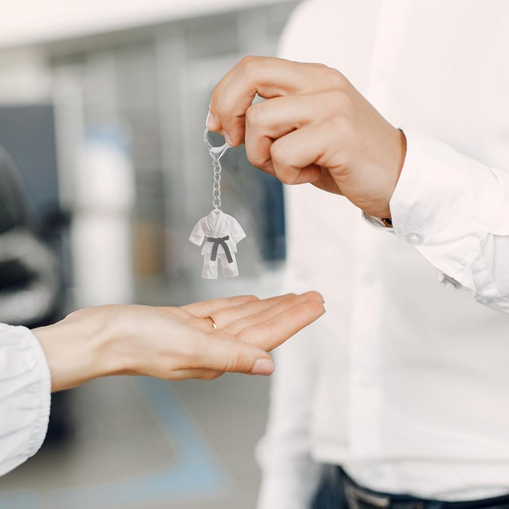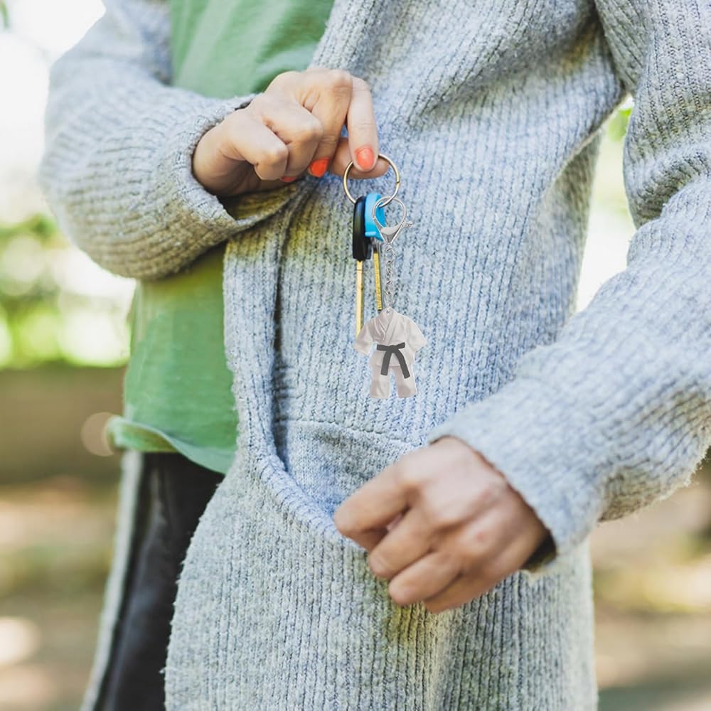 -Effortless Carry: Featuring lightweight acrylic construction, this taekwondo uniform keychain serves as a convenient collectible keyring, easy to attach to bags, keys, or sports gear