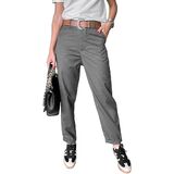 Features: High waisted dress pants, designed for the modern working woman, striped dress pants, tapered leg, ankle length, cuffed hem, side pockets, button and zip closure. Relaxed fit suit trousers for women.
