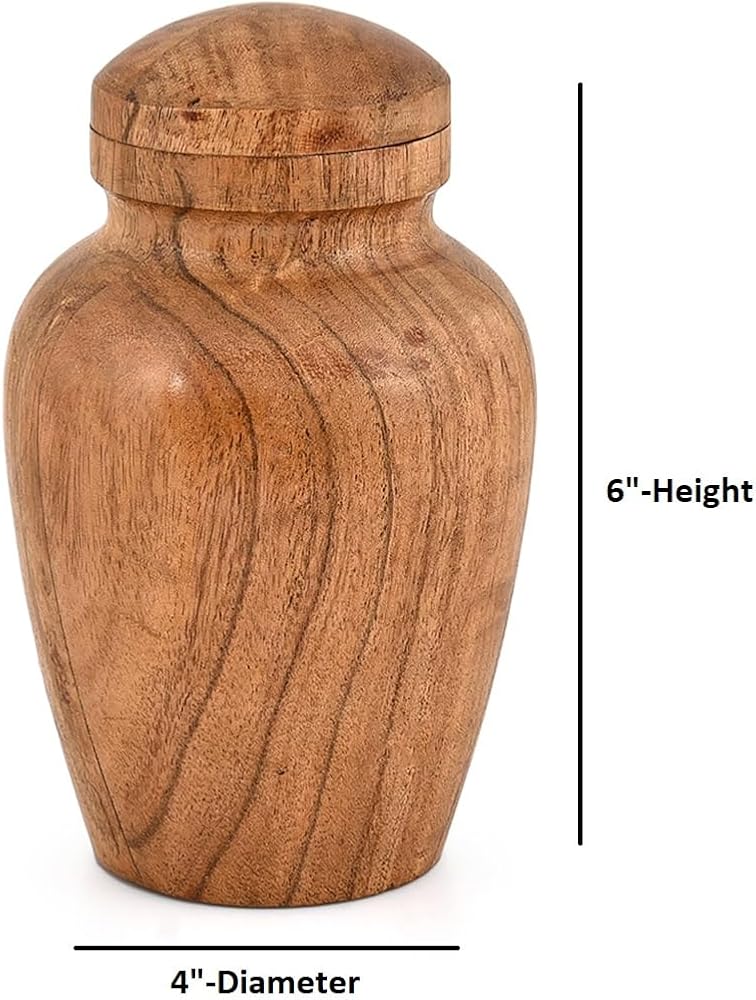 This round urn is perfect for adding a touch of natural elegance to any room or for discreetly storing small treasures. Size(Inch): 4" x 4" x 6", Size(Cm): 10.16cm x 10.16cm x 15.24cm