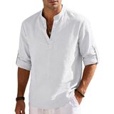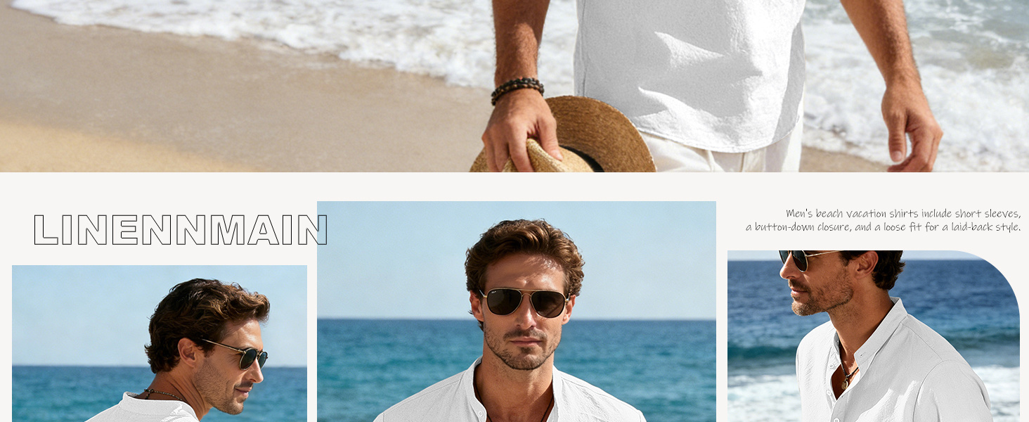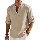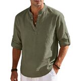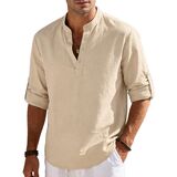 Linen Henley Shirts: Features a classic Henley neck with button placket for a timeless look. Relaxed fit beach shirts offer easy movement without being baggy
