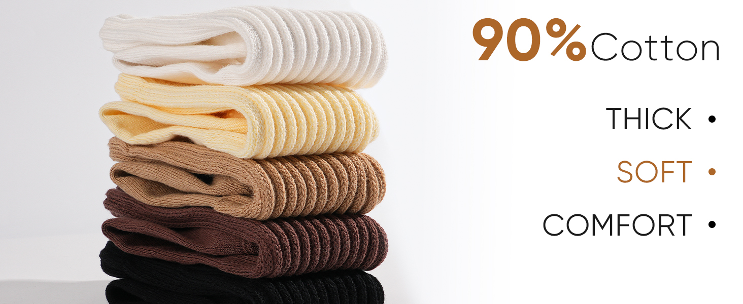 90% Cotton for Supreme Softness & Warmth: Made with a premium cotton-rich blend, these women's crew socks offer cloud-like comfort perfect for chilly days. The durable, tightly knit fabric resists pilling, and reinforced heels and toes prevent holes for lasting wear.