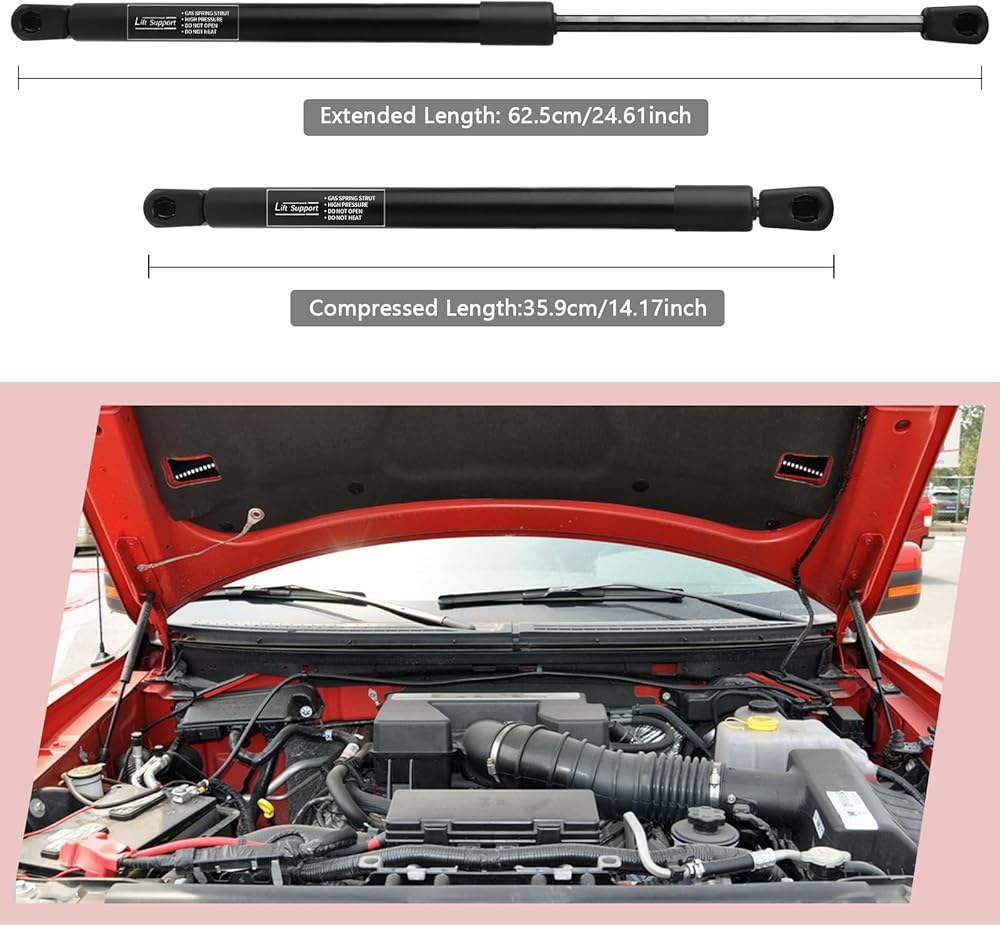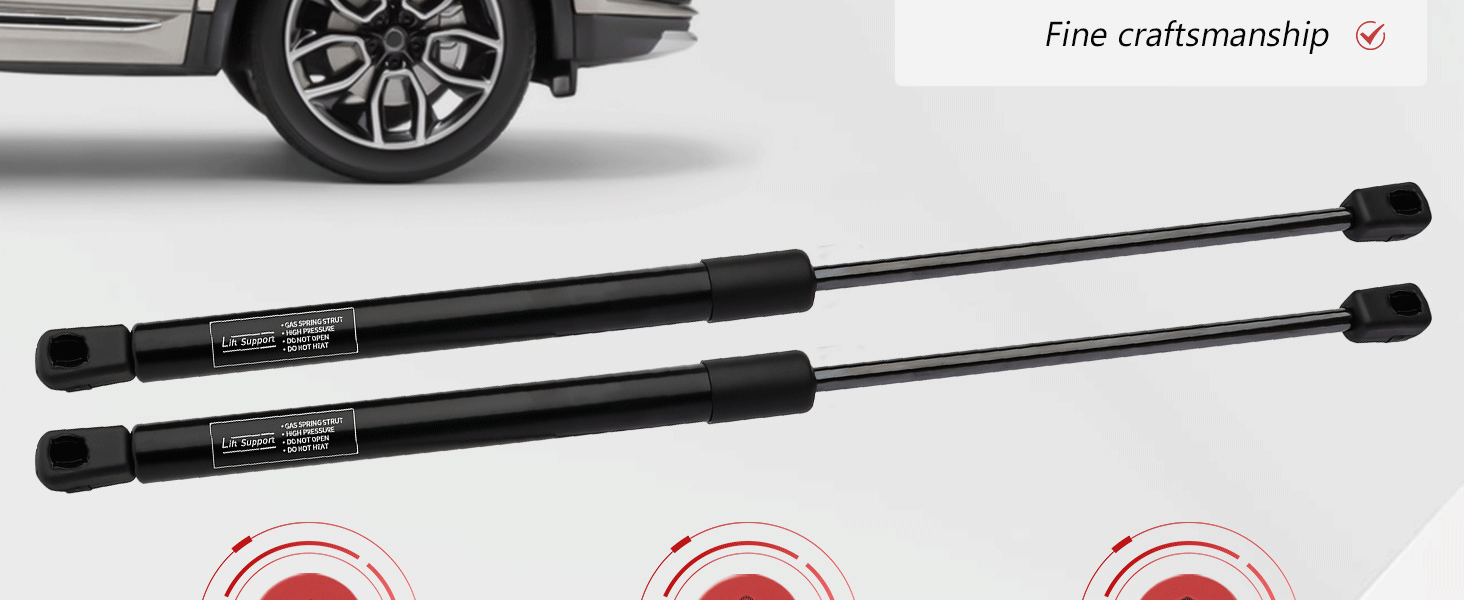 NOTES: Please don't compress the new lift support by your hands. As struts have strong force inside it. Once installed they will work well. Ensure compatibility and hassle-free installation.