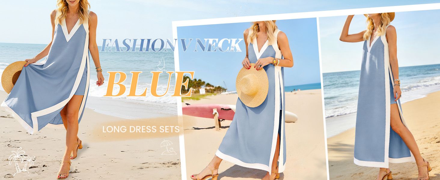 Fashion v neck long dress sets suitable for a variety of spring and summer occasions, such as parties, shopping, travel, and everyday wear