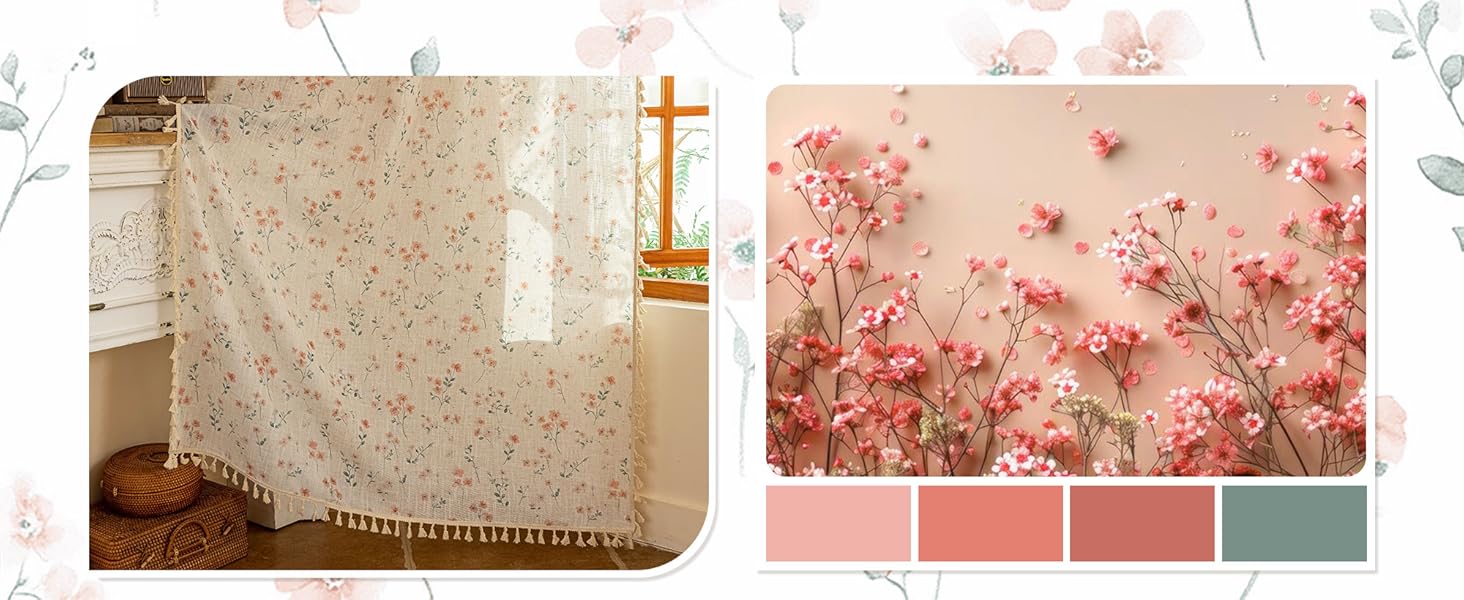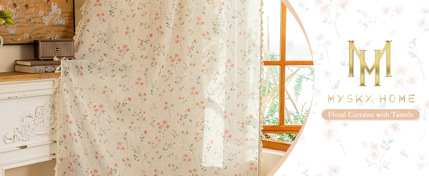 Light Filtering: The semi sheer floral curtains are filtering out most of the harsh light, allowing just the right amount of natural light to filter through while still providing privacy. Giving you a comfortable hazy feeling of space and a soft view. It provides a natural, airy and private feel to your living room, bedroom, dining room, nursery, playroom, office and study.