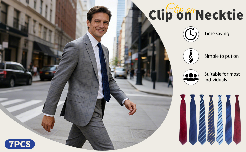 Quick Wearing Design: This striped clip on tie uses a clip structure, making the clip on tie easy to put on, and the pre tied form means no manual tying is required, helping reduce preparation time with a clip on tie