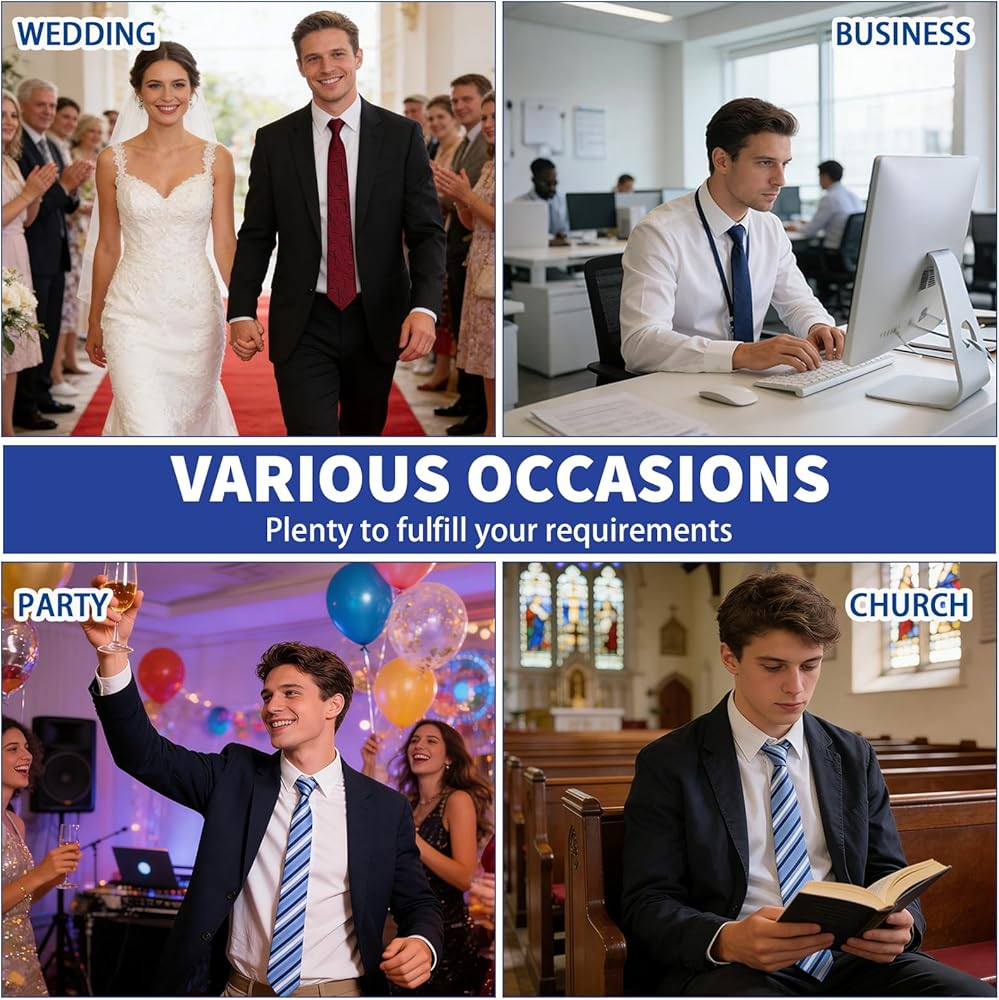 Flexible Occasion Wear: These clip ties for men, as part of a clip on tie selection, work well for formal settings such as work, ceremony, and banquet, and also suit casual occasions like shopping, party, and dinner with a clip on tie