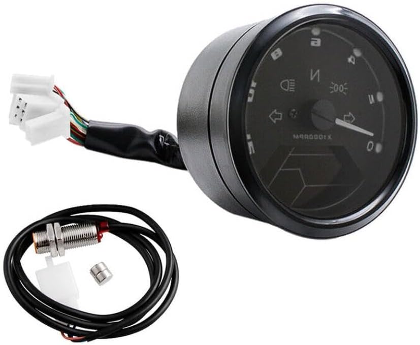 Easy Install 12000RPM LCD Digital Speedometer Tachometer - Cafe Racer Motorcycle Odometer with LED Backlight Digital speedometer and tachometer with LCD display designed for cafe racer and custom motorcycles. Features a 12000 RPM range tachometer and digital odometer for accurate readings. The LCD screen includes LED backlighting for improved visibility in low-light conditions. Simple installation process allows for straightforward mounting on handlebars or other compatible surfaces. Provides real-time speed and engine RPM monitoring with clear digital readouts. Suitable for use on a variety of motorcycle types where a compact, minimalist instrument cluster is desired. Compatibility Disclaimer: This is an aftermarket replacement part. Any brand names or model designations mentioned are used solely for the purpose of demonstrating compatibility.