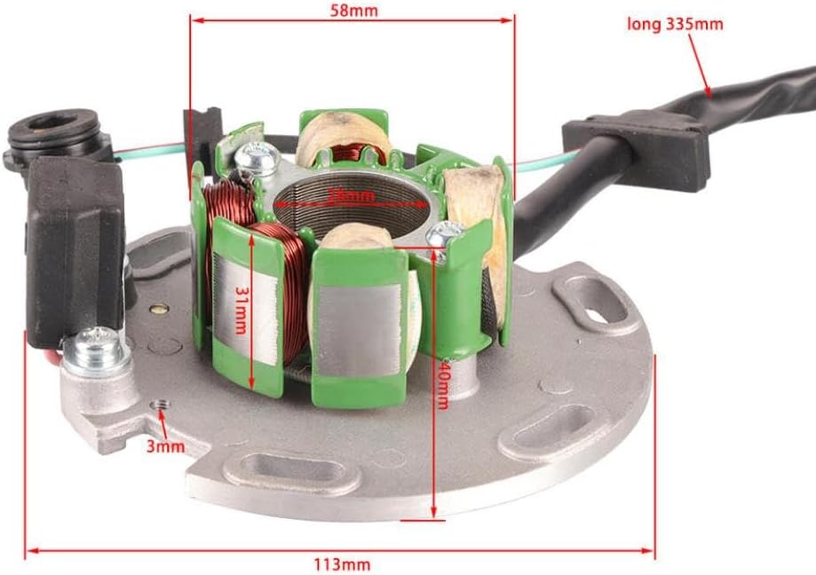 Motorcycle 150cc Coil Stator Magneto is Suitable for LF150 150cc Horizontal Engine Pit Bicycle 150cc Magneto Stator Coil This stator coil assembly is designed for use with 150cc horizontal engines commonly found in pit bicycles and similar motorcycles. It functions as a magneto stator, generating electrical power for the ignition system. The unit fits LF150 150cc engine models and serves as a direct replacement for damaged or worn stator components. Installation requires alignment with the engine's flywheel and proper connection to the ignition system. The coil is built to meet standard specifications for durability and consistent performance in small-displacement motorcycle applications. Compatibility Disclaimer: This is an aftermarket replacement part. Any brand names or model designations mentioned are used solely for the purpose of demonstrating compatibility.