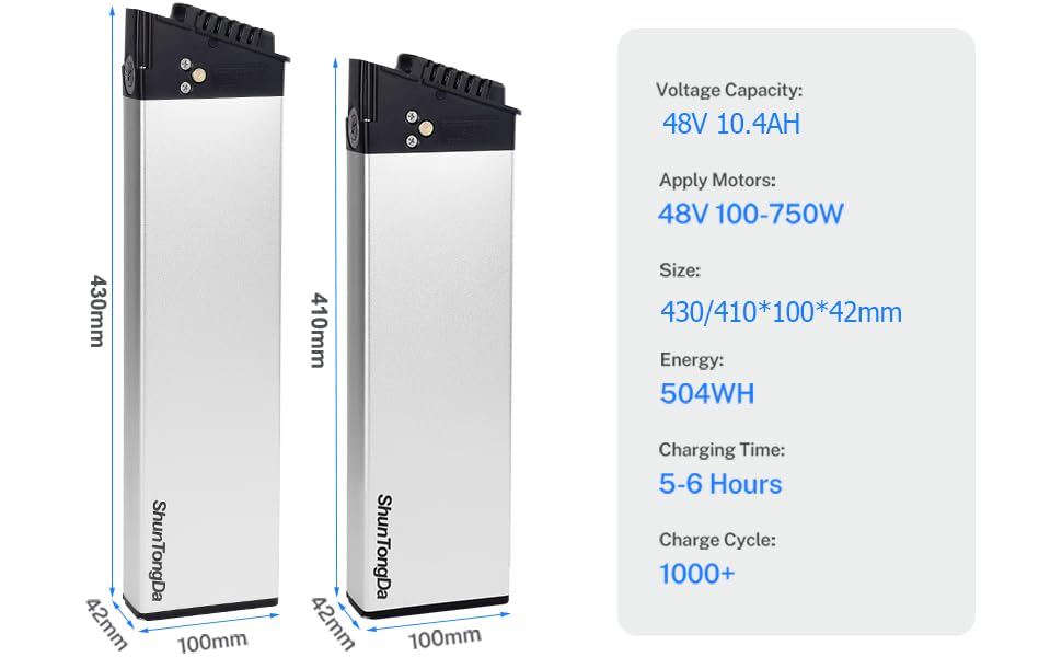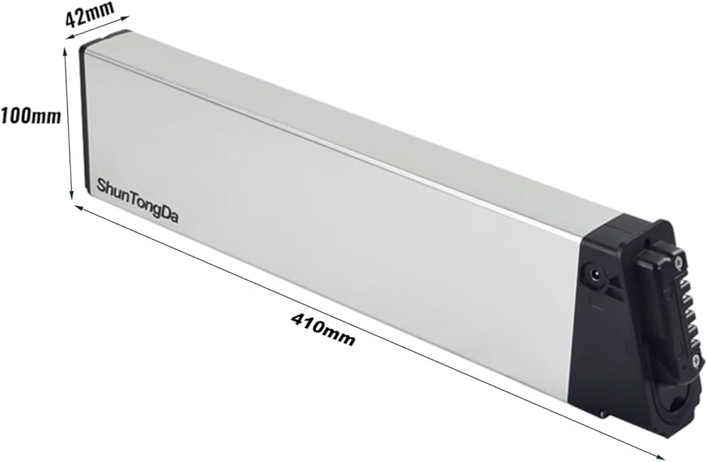 48v battery built in dimensions is (410 * 100 * 42mm) and DCH 006 (Logo from the black top cover) appearance. This Electric bicycle battery model is built-in battery, it can only be compatible if its size and appearance are the same