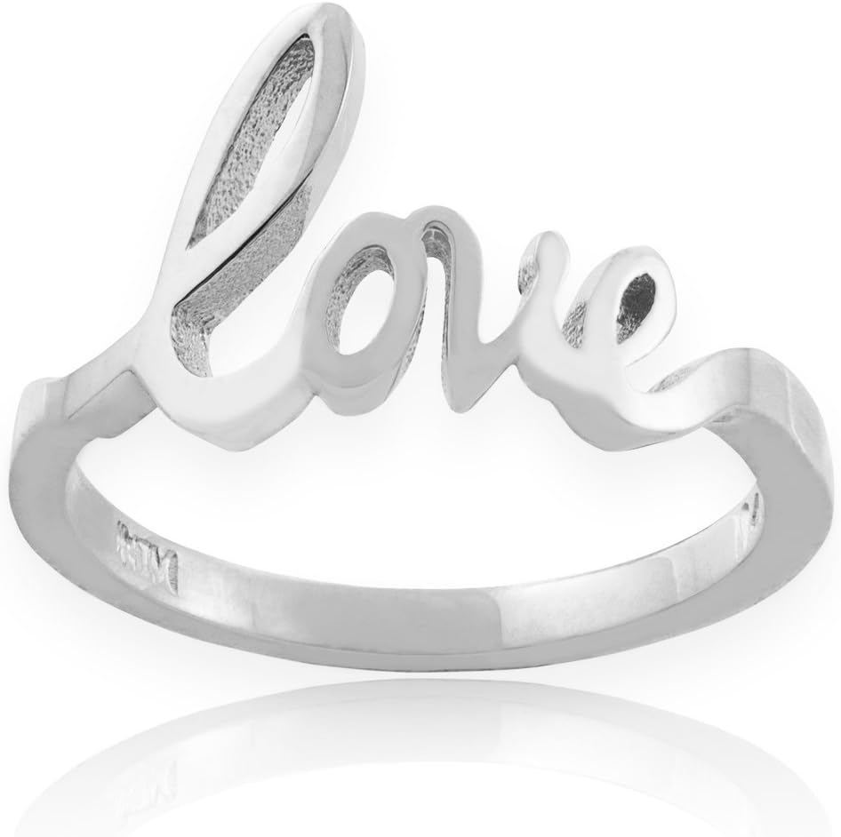 This solid sterling silver ring features the "love" script with sleek design. Show your sweet and classy side with this handcrafted gold "love" script ring that will surely capture anyone's attention.