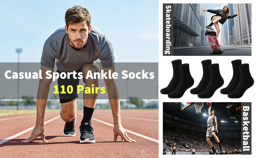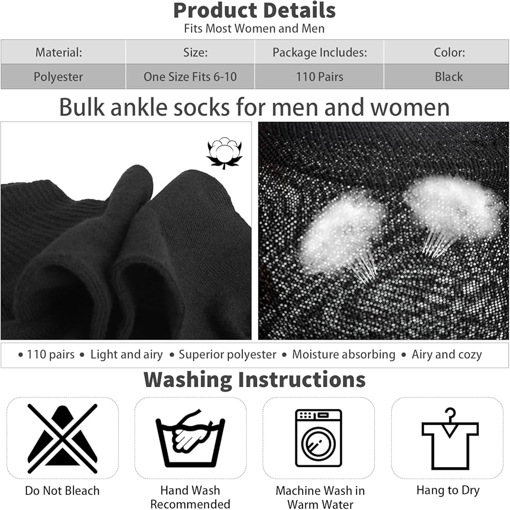 Ample Quantity: The package includes 110 pairs of bulk mens socks in solid color, enough quantity to meet your daily wear, replacement, and sharing needs, making these bulk mens socks ideal for home, travel, or donation use
