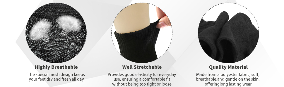 Reliable Material: These bulk mens socks are made of polyester fabric that is soft and breathable, with moisture wicking function to keep your feet dry and fresh, suitable for all seasons and comfortable for long use, making the bulk mens socks practical and reliable
