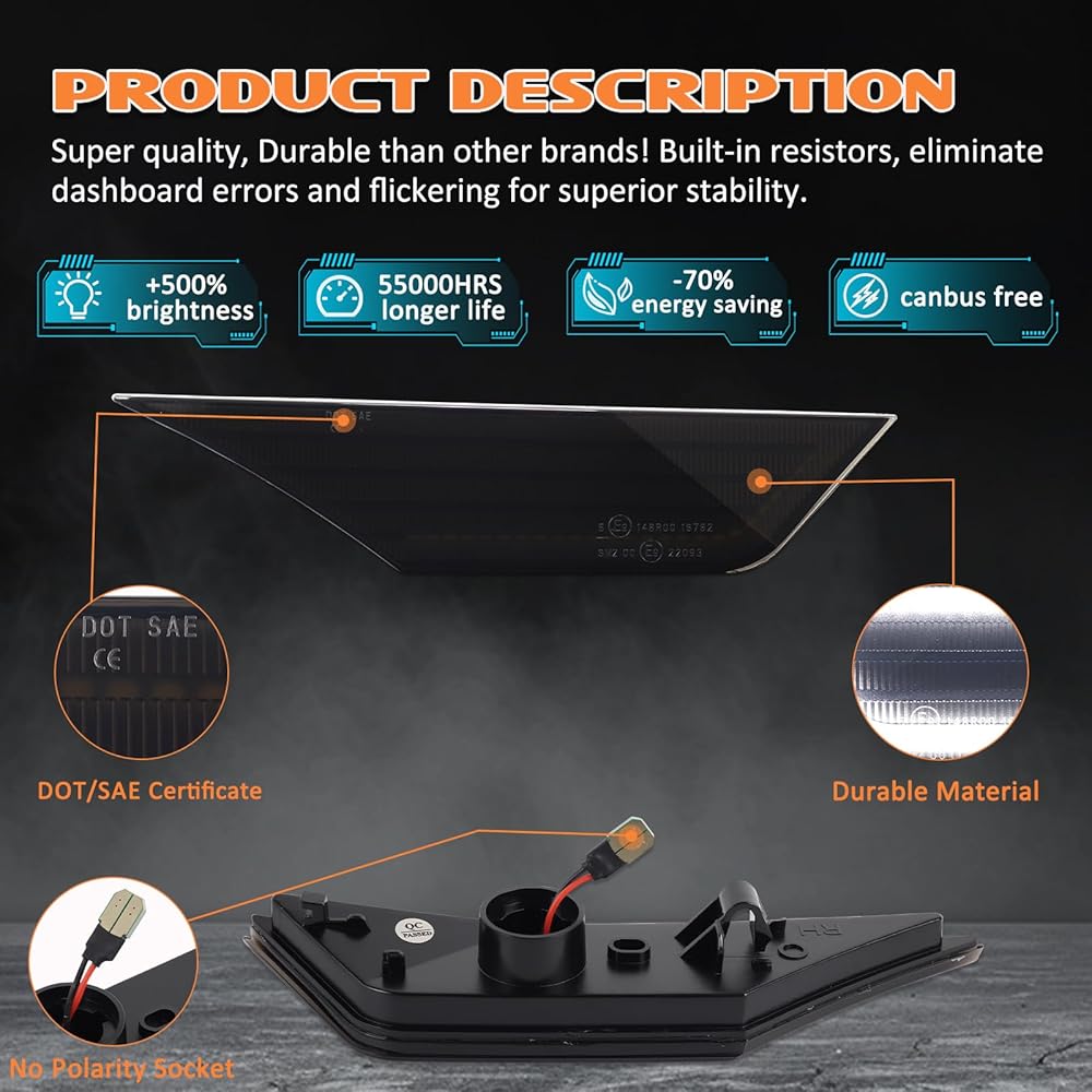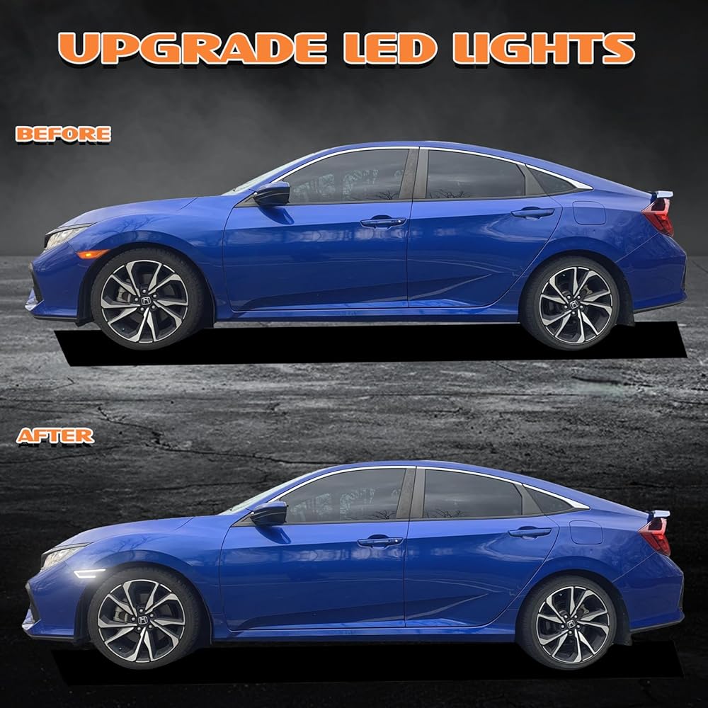 𝐔𝐧𝐢𝐪𝐮𝐞 𝐖𝐡𝐢𝐭𝐞 𝐥𝐢𝐠𝐡𝐭 𝐝𝐞𝐬𝐢𝐠𝐧:White LED side marker lights for 2016-2021 Honda Civic enjoys Unique and bold styling makes your car stand out with a touch of elegance. Our advanced LED technology provides superior illumination compared to traditional bulbs, ensuring enhanced visibility and safety on the road.