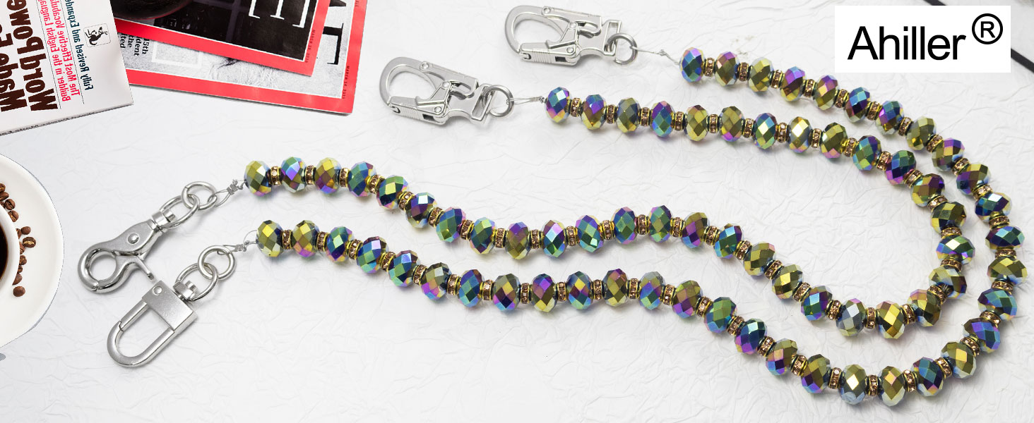 High-quality materials: Bling wallet chain is made of carefully selected high-gloss glass beads, each of which is strictly selected and finely polished; the bead connecting wire is made of two stainless steel wires, which are double-reinforced to resist pulling, giving it both exquisite appearance and solid durability.