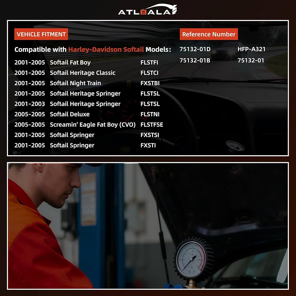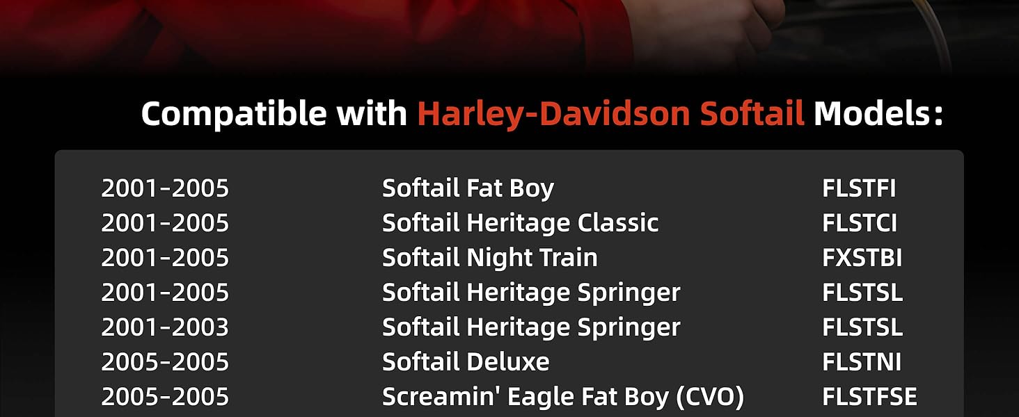 【Vehicle Fitment】 Compatible with Harley Softail models from 2001–2005, Fits for Heritage, Fat Boy, and Night Train.