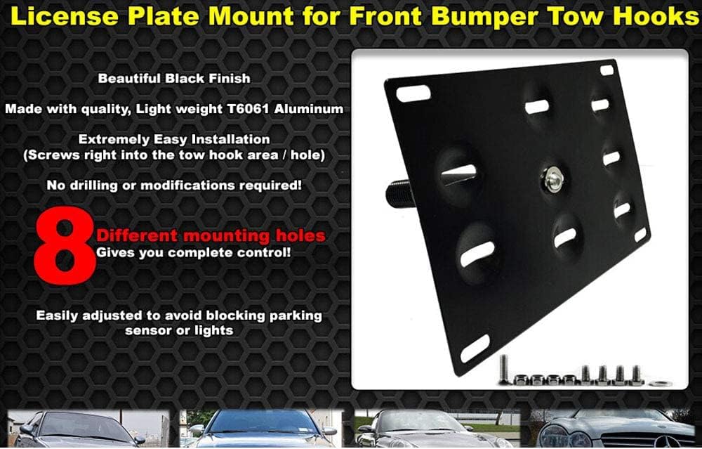 - Made of high-quality aluminum alloy, including 1 set of license plate holder kit and 1 trailer hook that matches the corresponding model
