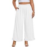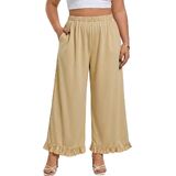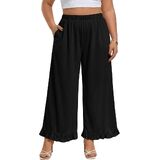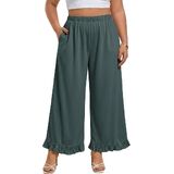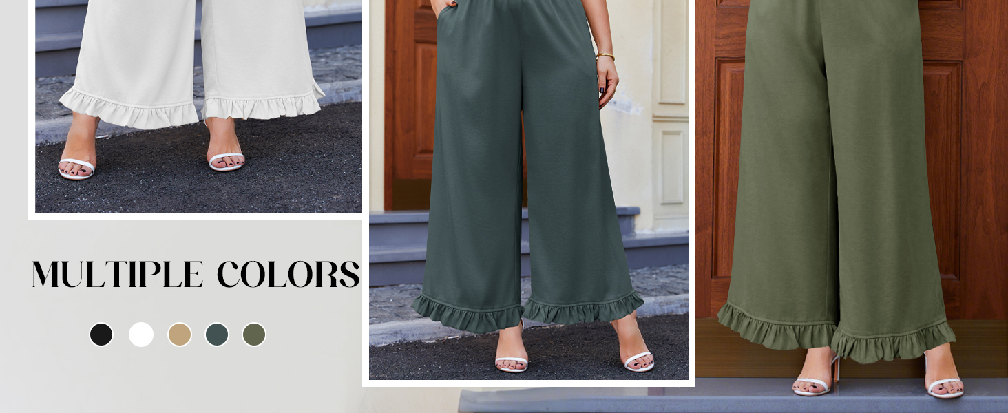 Flattering Wide-Leg Silhouette: Designed to flatter every body type, these pants feature a classic wide-leg cut that elongates your legs and balances your figure. The loose, flowy fit skims over hips and thighs, creating a sleek, elegant look. The ruffled hem adds a feminine, playful touch, elevating the design from basic to chic