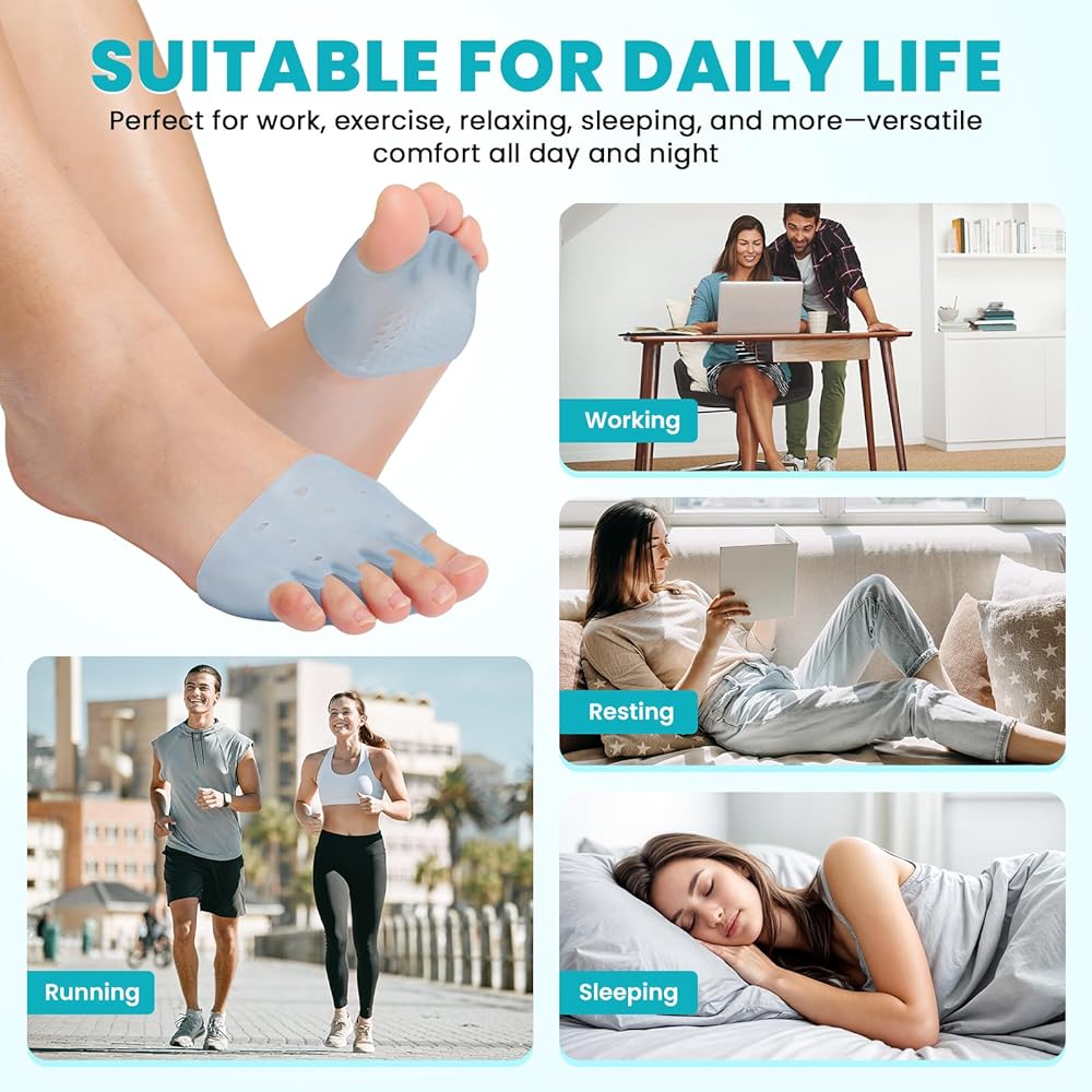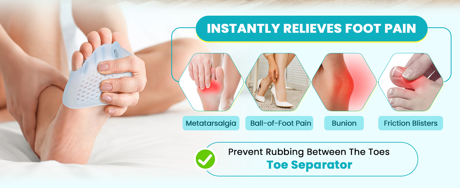 【Upgraded 2-in-1 Design】Unlike basic toe pads, our upgraded 2-in-1 design features a soft honeycomb metatarsal pad for added support. It cushions the ball of foot, improves arch stability, and helps relieve tension in your hips, knees, and ankles during walking or standing.