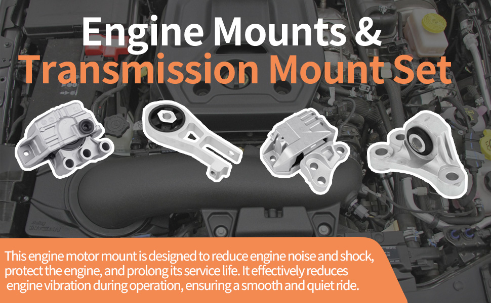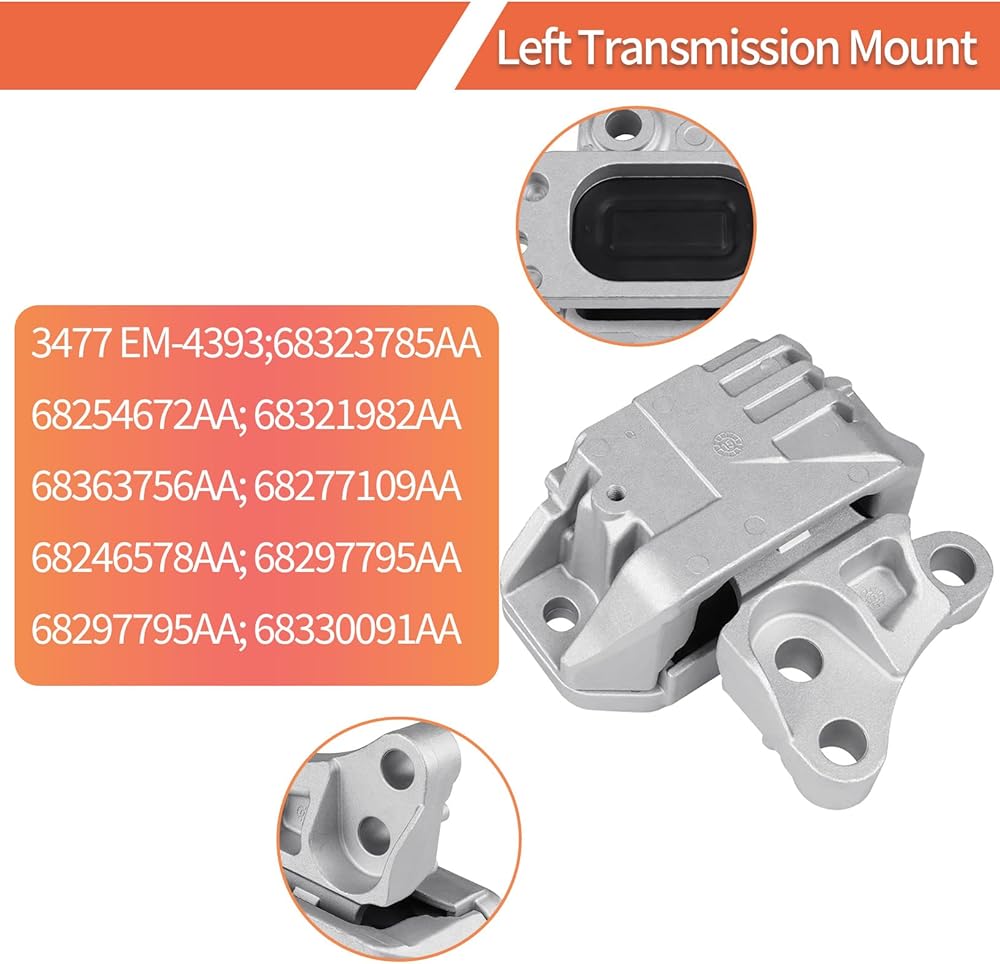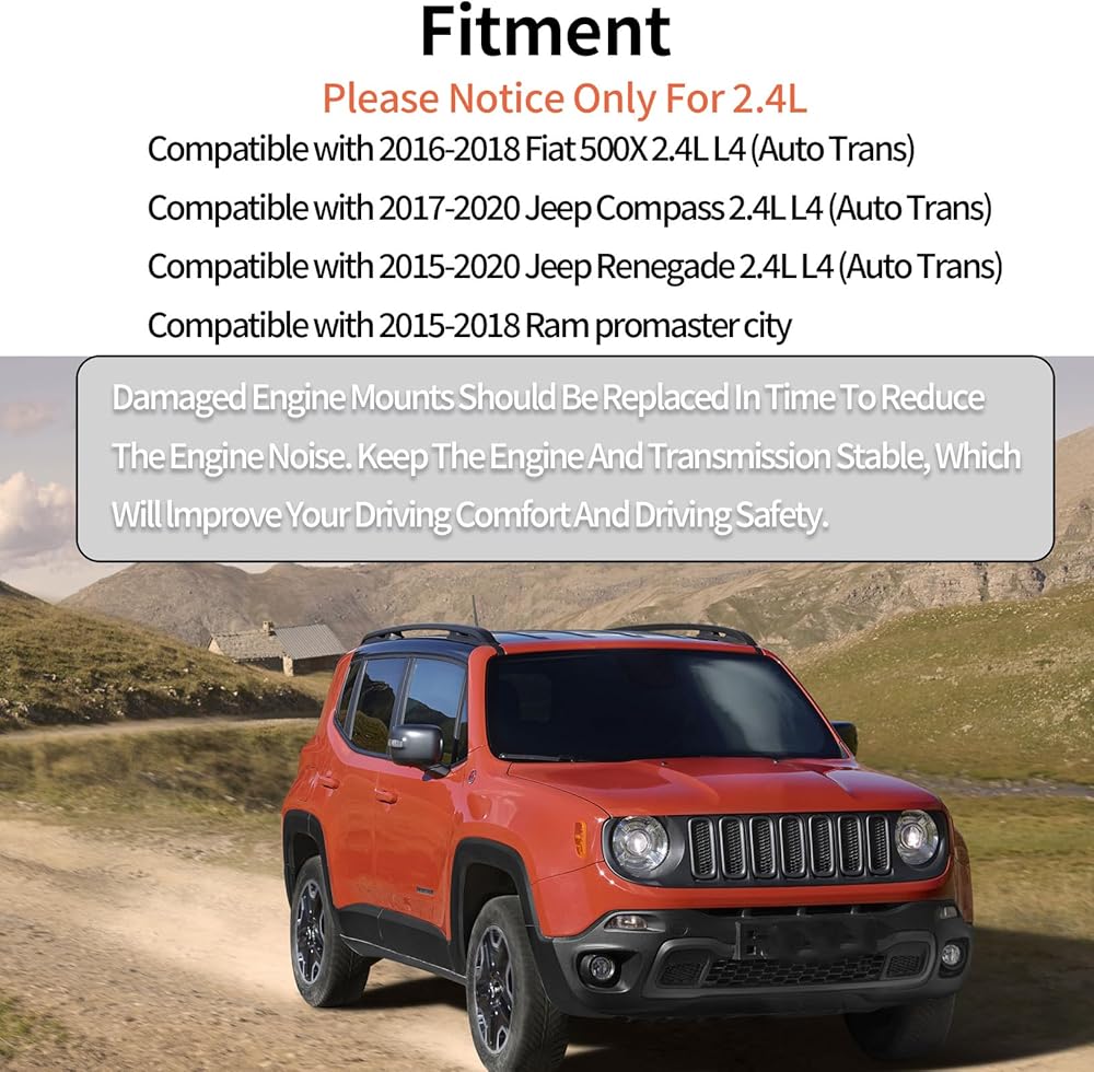 4Pcs Engine Mounts & Transmission Mount Set Compatible with 2016-2018 Fiat 500X 2015-2020 Renegade 2.4L 2017-2020 Compass 2015-2018 R-am promaster City Engine Motor Mount 68363756AA