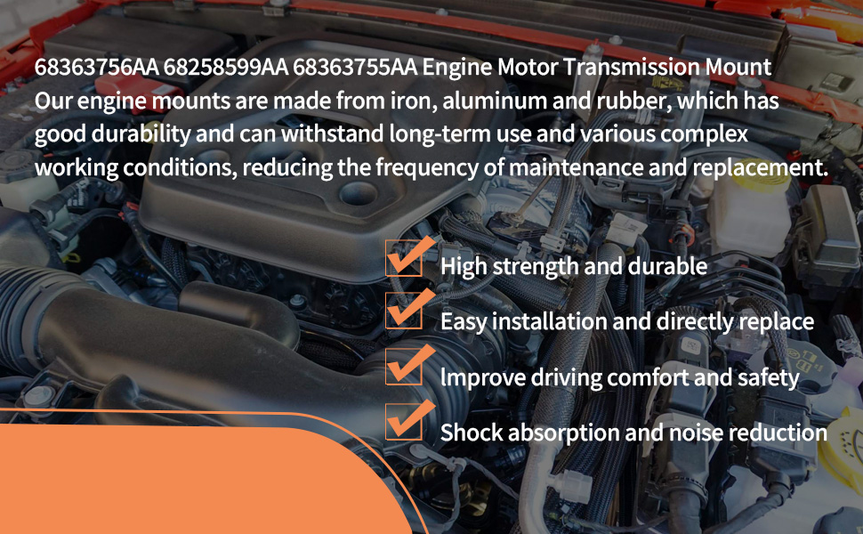【Function】This engine motor mount is designed to reduce engine noise and shock, protect the engine, and prolong its service life. It effectively reduces engine vibration during operation, ensuring a smooth and quiet ride.