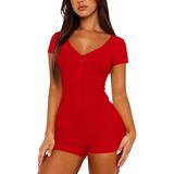 Pajama jumpsuit: This pajama jumpsuit features a V-neck, single Zip up front, short sleeves, solid color, elastic abdominal control, slim fit, Y2k fashion style, classic tight fitting jumpsuit, avoids exposure to light, and is easy to wear