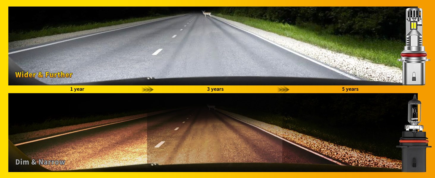 【10+ Years Longer Lifespan】Utilizing premium aviation aluminum as the main body and featuring a large copper baseboard for extensive heat dissipation. Coupled with a 15,000RPM high-speed cooling fan, it enhances heat dissipation efficiency. New upgraded FAHREN 9007 hb5 bulb ensures a lifespan exceeding 60,000 hours of continuous illumination and stable operation. Bid farewell to the inconvenience of frequent replacements