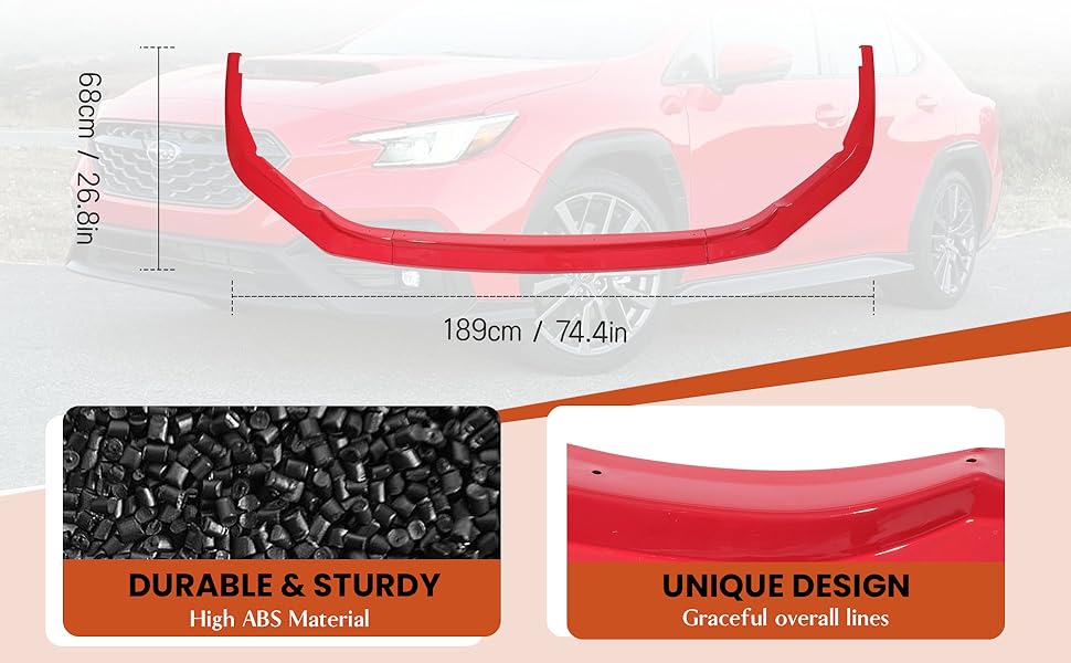 Fitment: Specifically designed for Subaru WRX 2022 2023 2024 models, this front bumper lip adds a sleek and sporty look to your vehicle.