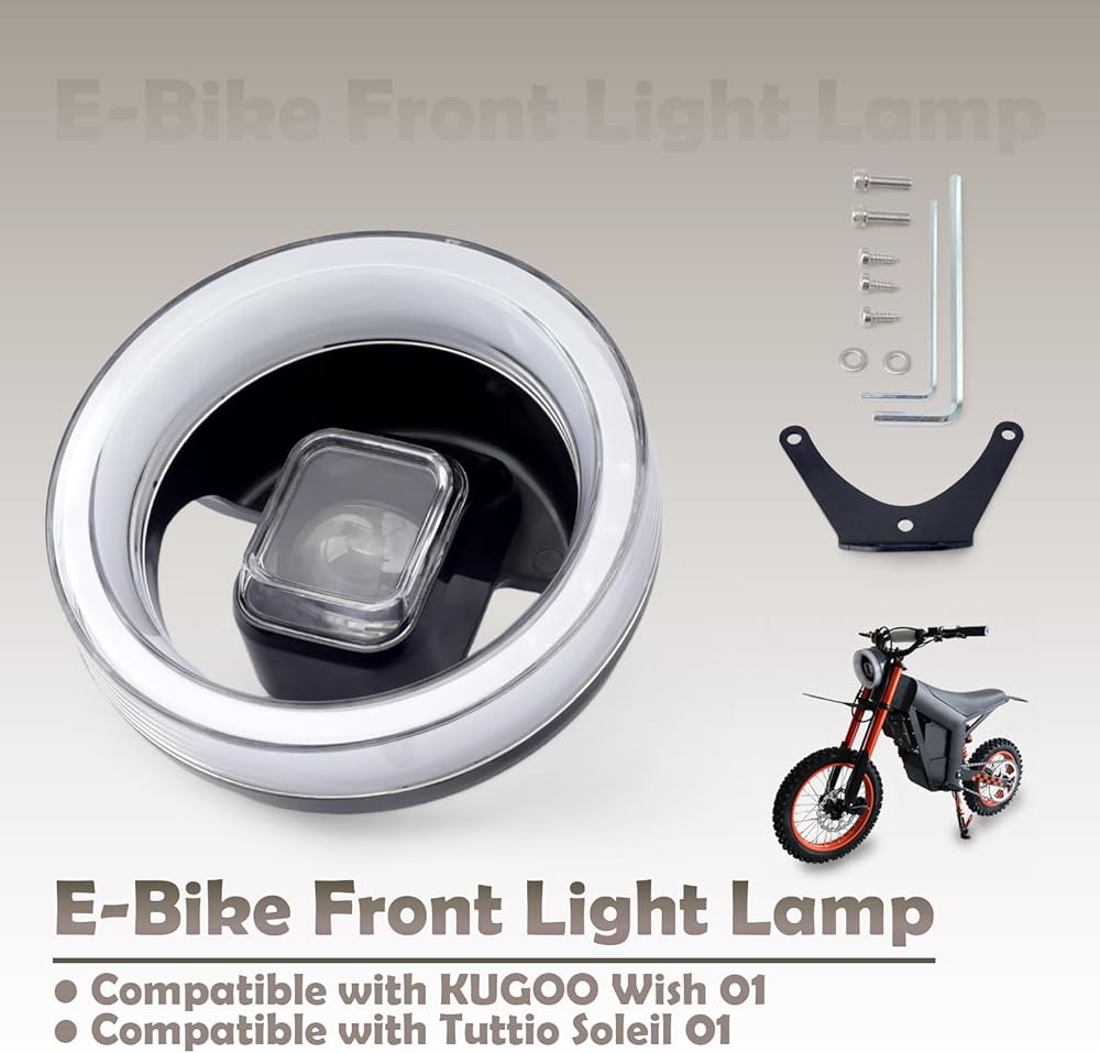 Wide Compatibility: This front light lamp is compatible with various E-bike models, replacement for KUGOO Wish 01 for Tuttio Soleil 01 series models