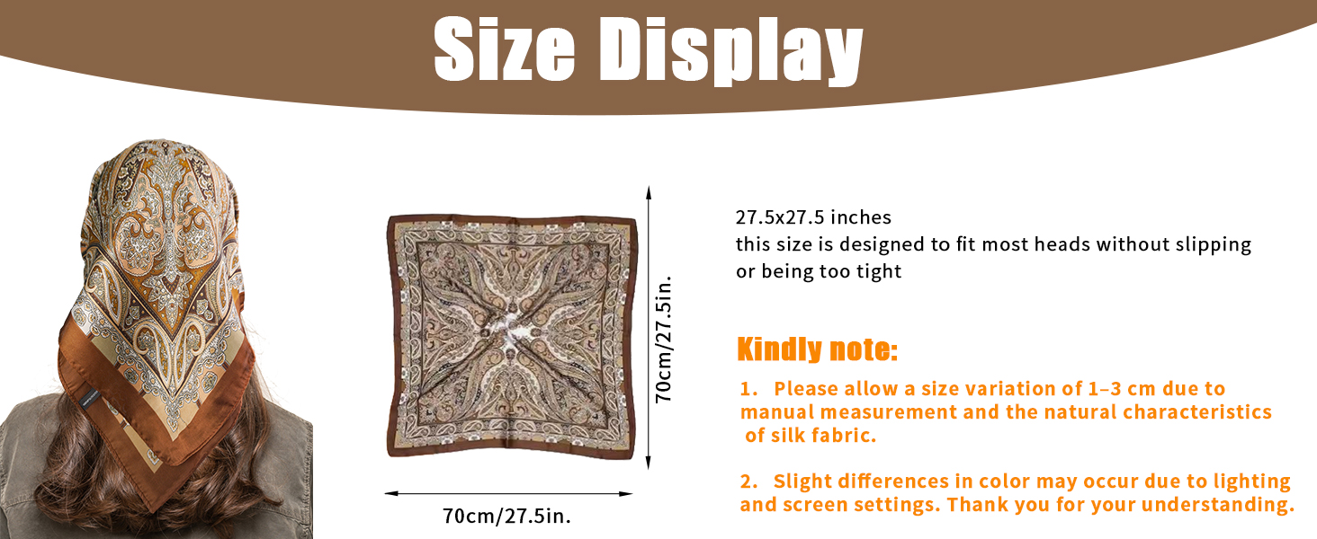 Soft Like Real Silk: Crafted from special polyester fiber, this scarf mimics the smooth texture of silk. It's lightweight, breathable, and comfortable for all-day wear without skin irritation. Dimensions: 27.5" x 27.5".