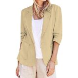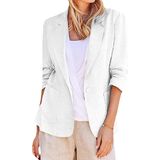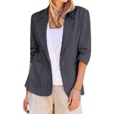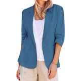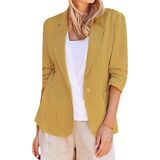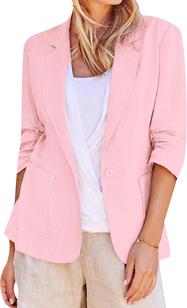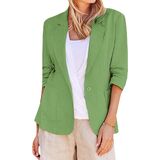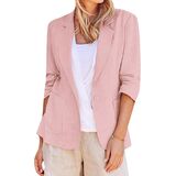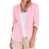 - Linen single button blazers,3/4 sleeve solid color jacket,work lightweight summer cardigan.
