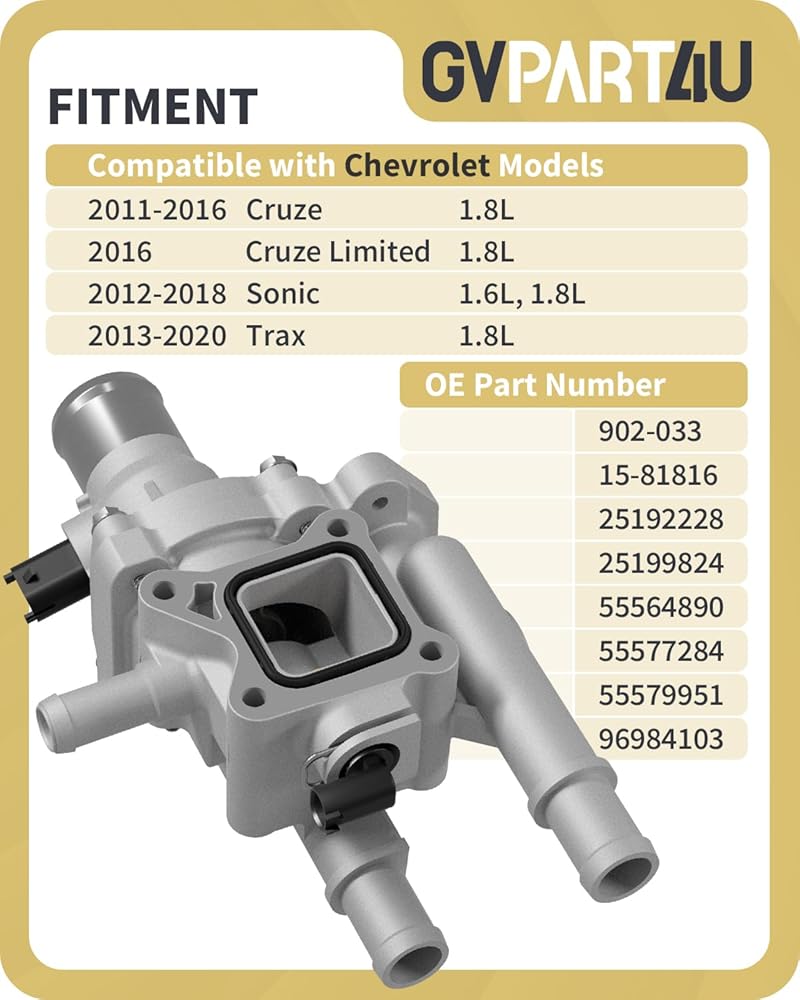 [Replacement Part Number] The OE numbers: 25192228, 55564890, 55577284, 15-81816, 902-033, 55579951, 96984103, 25199824. Please confirm that your thermostat's OE number is within the specified range before purchase to ensure compatibility