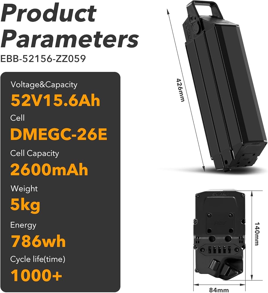 Motor Limits: COMPATIBLE WITH 52V 0-1500W MOTORS: Take your electric bicycle to the next level with our powerful battery compatible with motors ranging from 0 to 1500W. Experience the thrill of enhanced speed and performance like never before