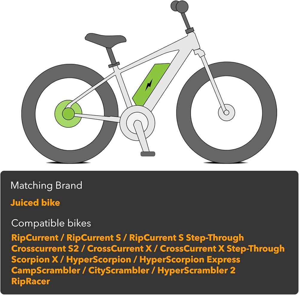 Matching Battery Style:52V Electric Bike Battery Compatible for Juiced Bike Bicycle Fit for RipCurrent RipCurrent S RipCurrent S Step-Through;Crosscurrent S2 Crosscurrent X and Crosscurrent X Step-Through;Scorpion X;HyperScorpion HyperScorpion Express;CamScrambler;CityScrambler HyperScrambler 2 and RipRacer Battery Replacement