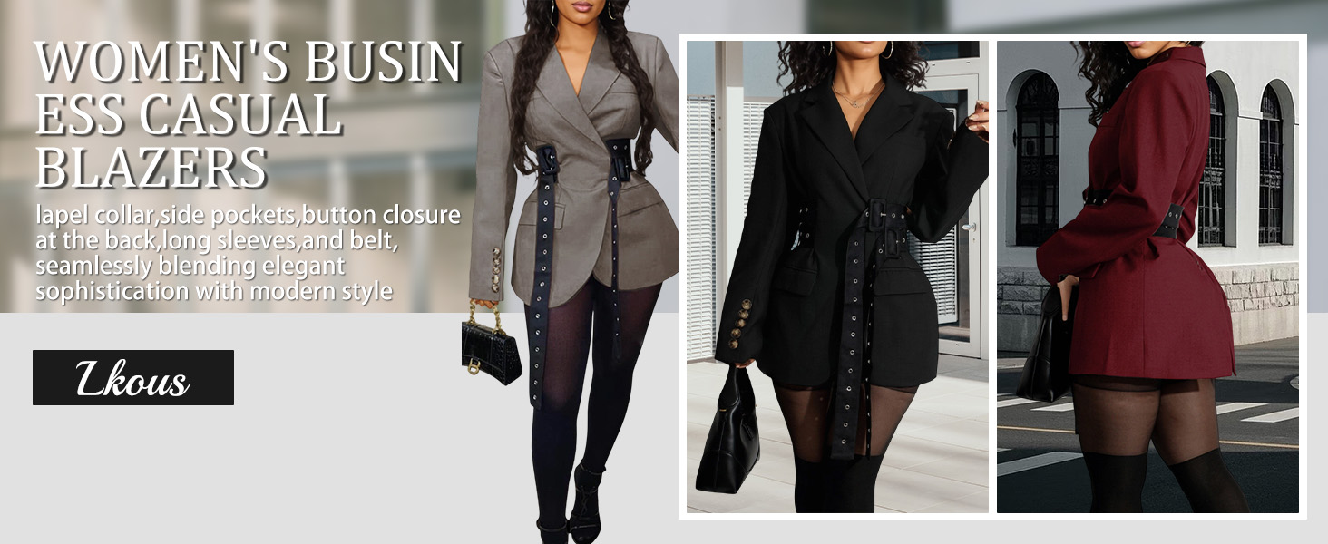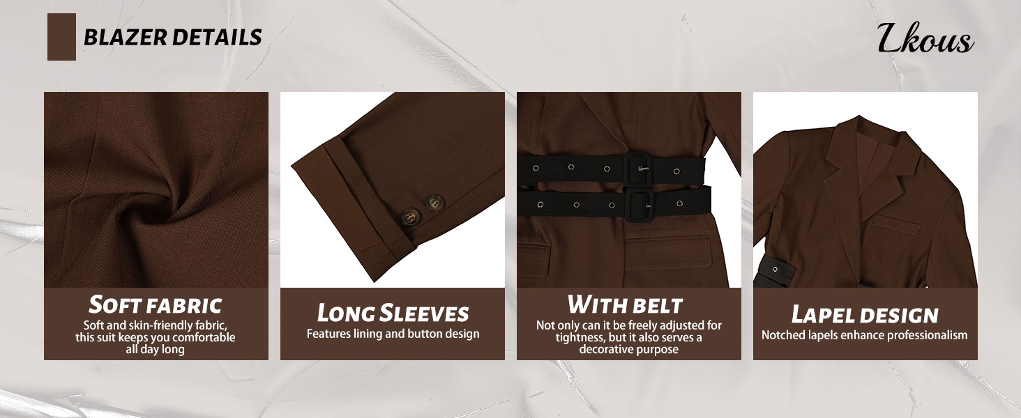 Stylish Design:This blazer features lapel collar,side pockets,button closure at the back,long sleeves,and belt,seamlessly blending elegant sophistication with modern style