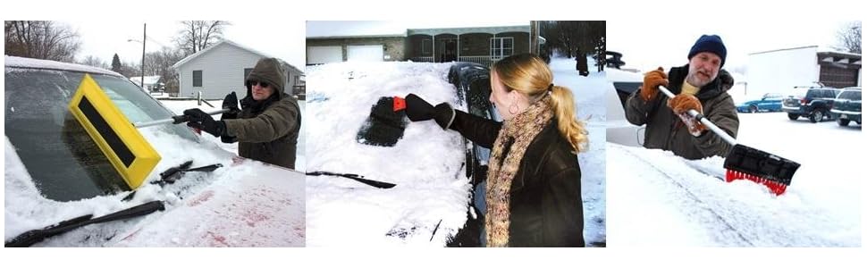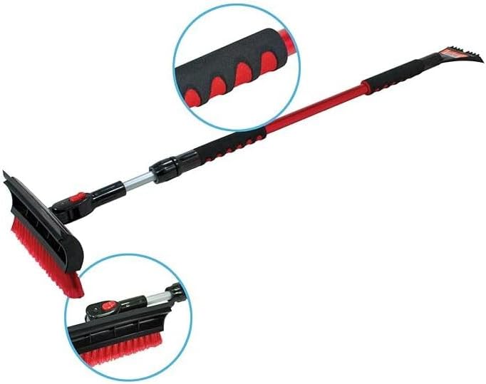 Blast through winter ice with the Bigfoot 60"" Deluxe Telescoping Snow broom and Ice Scraper! This amazing ice scraper has it all and is perfect for the car or truck, no matter the size. While it packs down to about two feet for convenient storage, it fully extends to 48"" for a huge reach across windshields on even large road vehicles. There's no need to have a big bulky scraper in the trunk or backseat with this snow broom. Made polyethylene and aluminum, this ice scraper is safe to use on glass without gouging. It features three different heads to tackle all your snow scraping issues. The soft, yet firm, bristles knock away thick layers of snow and loose accumulation. Roll the brush over and you can really go to town with the 9"" wide scraping edge. If that's not enough, flip the brush and you have a narrow pick to tackle the toughest ice chunks. It's especially useful for getting into the tight confines of rear view wing mirrors so you can still safely see behind you. The edges are reinforced so you can really push hard without breaking. It's also weather-resistant and will stand the test of time. The handle features a brightly colored, foam grip that allows you to leverage the snowbrush with ease while you knock away ice and snow. EMSCO Group is the original USA manufacturer of the plastic snow shovel and continues to lead the way in developing and innovating winter and cleaning products. Get your Bigfoot 48" Telescoping Snow broom and Ice Scraper today!