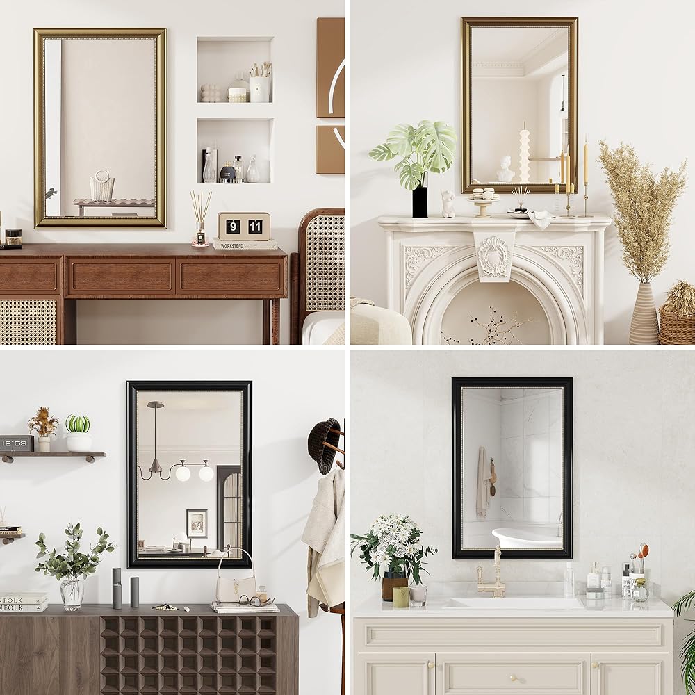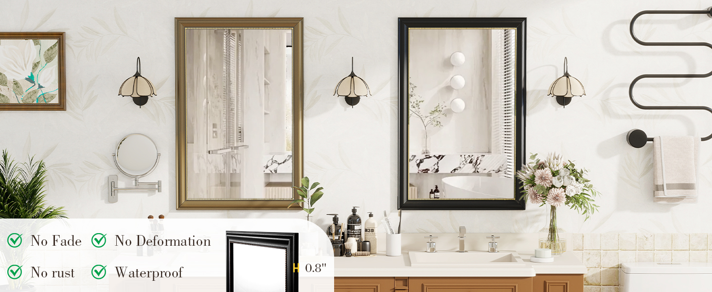 Durable Construction: Crafted from high-quality polystyrene, this wall mirror is built to last. The 5mm copper-free mirror material guarantees HD reflections with no distortion, and tempered glass ensures safety, makes it an ideal bathroom vanity mirror